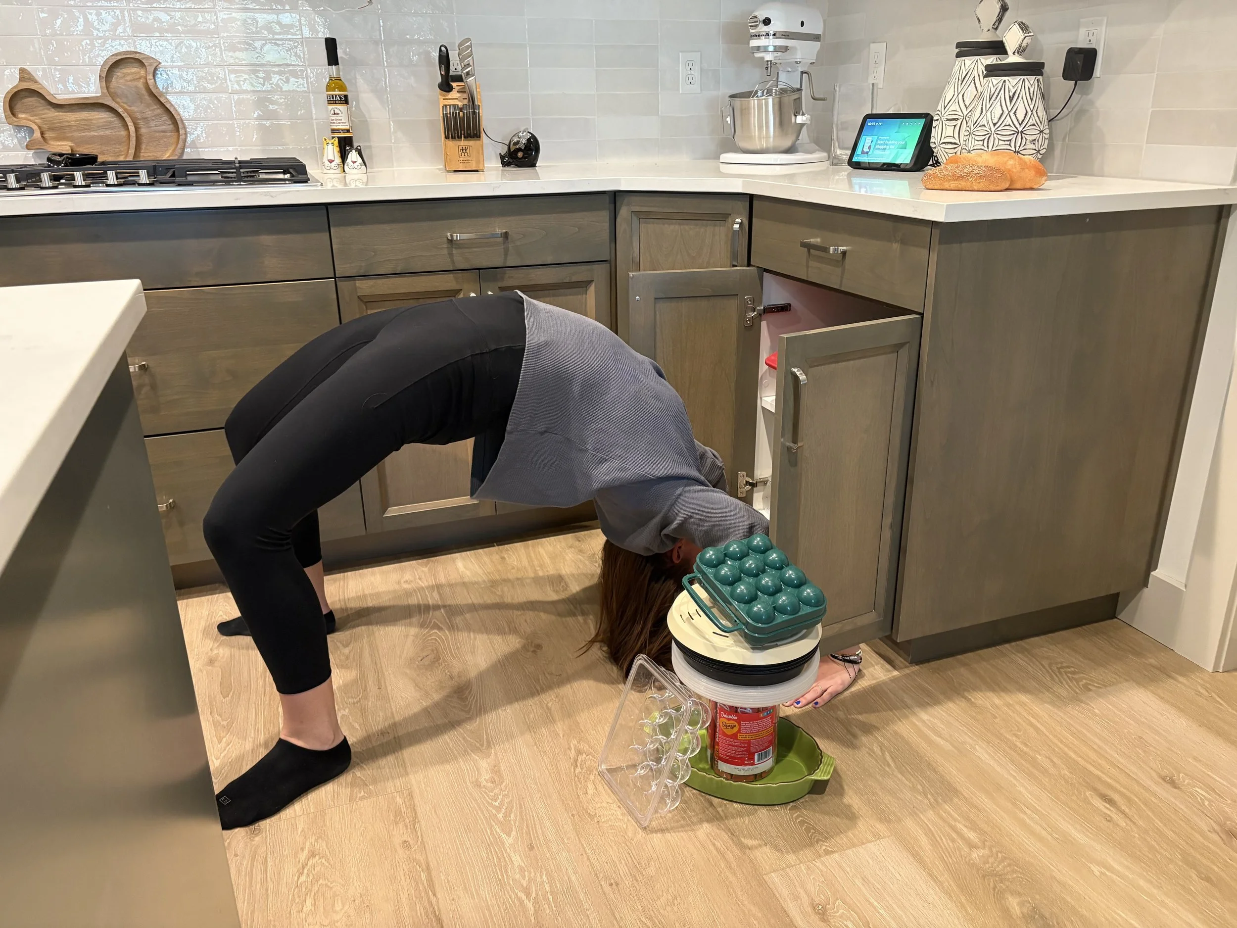 Reaching in your cabinets SHOULD NOT require a Yoga pose…