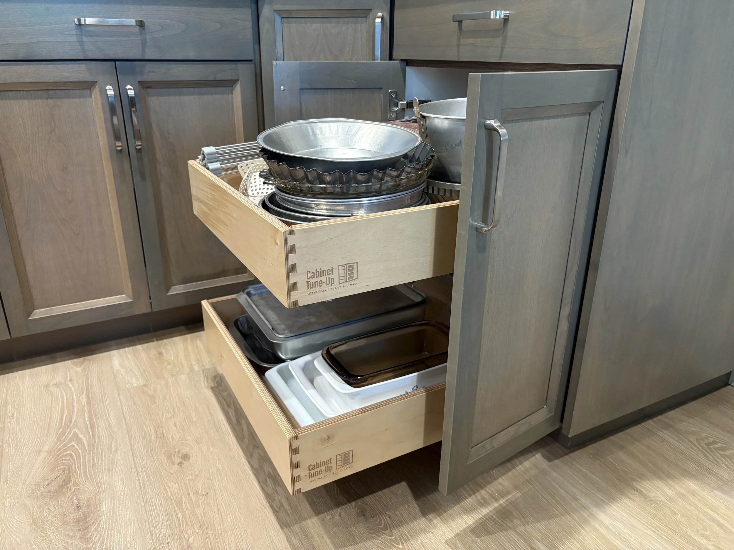Choosing our storage solutions is not just a purchase; it's a leap toward an organized, joyful kitchen. Don't let clutter hold you back any longer. Schedule your consultation today and reclaim your space with Cabinet Tune-Up, where your kitchen dreams come true.